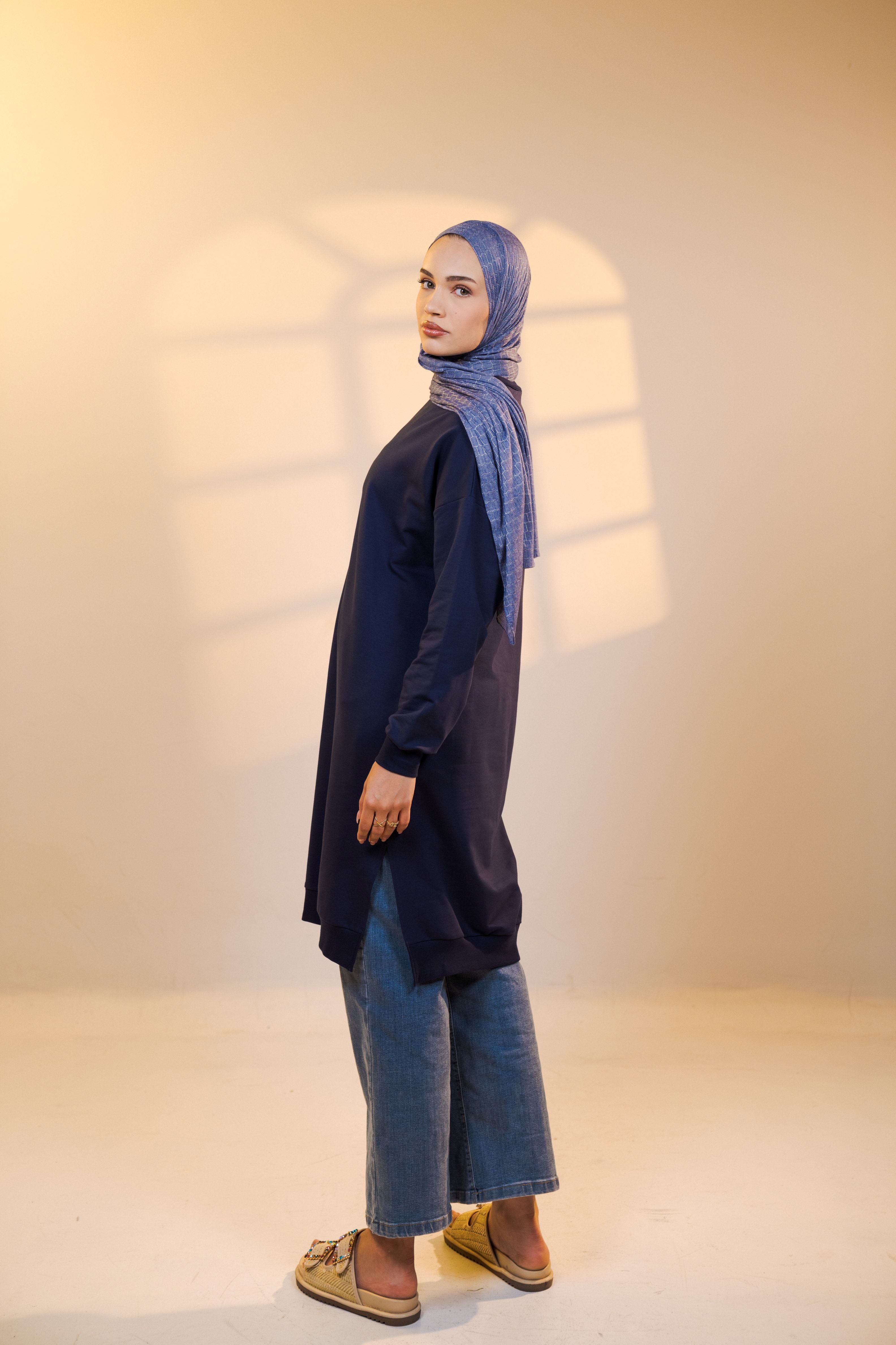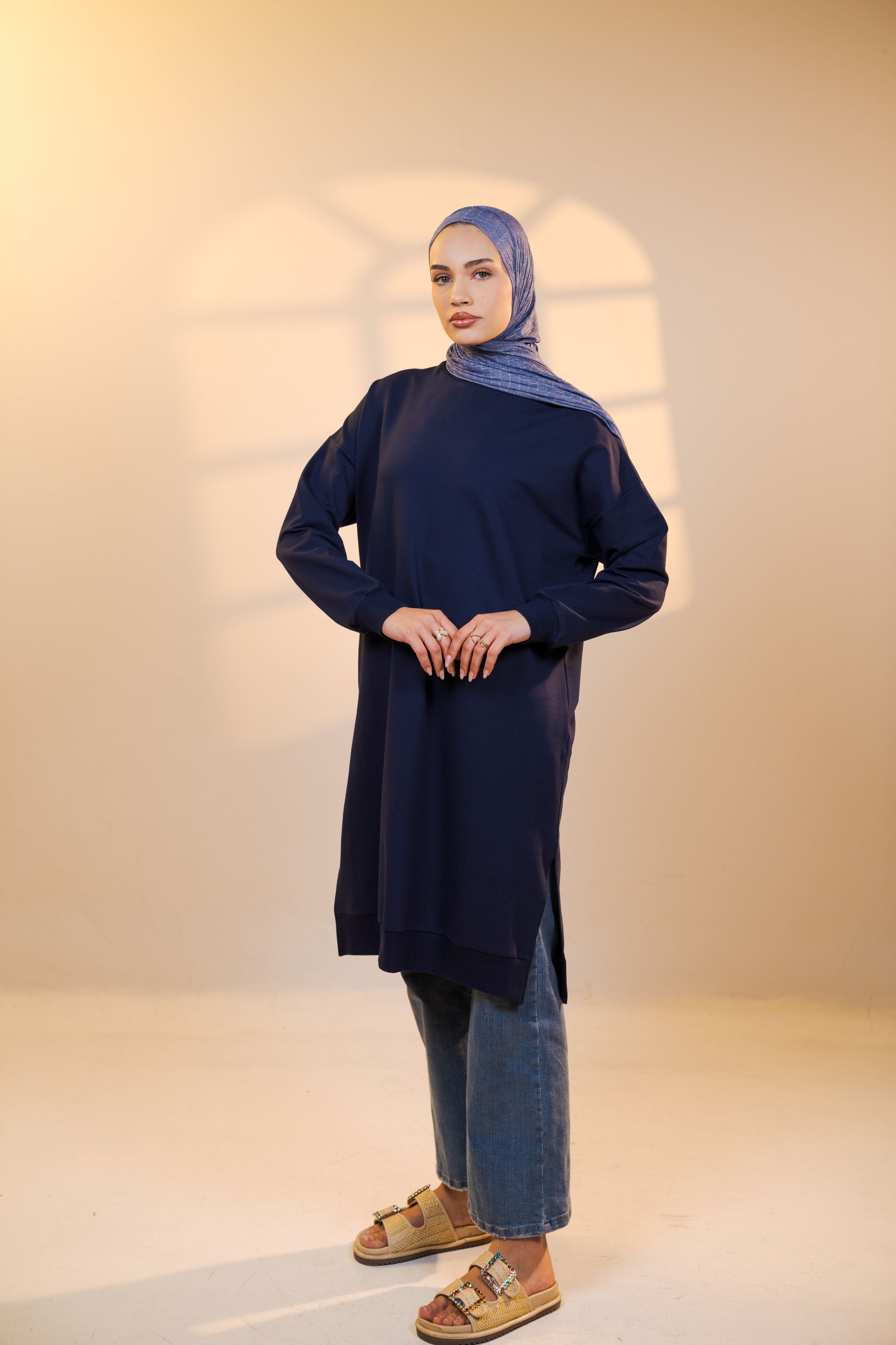 This classic Below Knee-length top is designed for everyday wear, offering comfort without sacrificing style. Made from a soft, breathable 77% cotton, it feels light and easy all day long. Whether you're relaxing at home or heading out, this dress keeps you comfortable and effortlessly put-together.