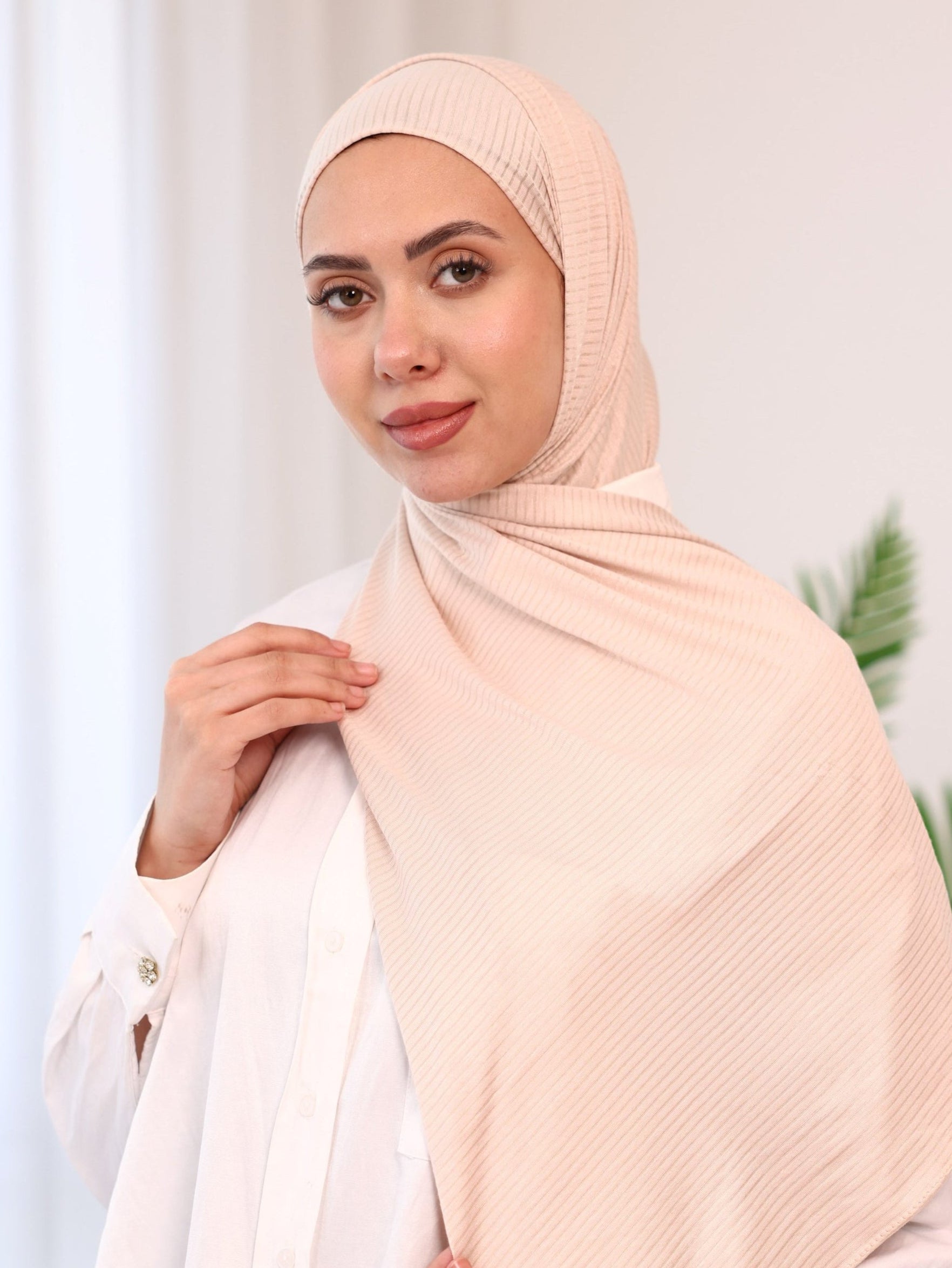 Elevate your daily essentials with our ribbed jersey hijab, crafted from a luxuriously soft, breathable fabric that drapes effortlessly. Designed in a timeless solid color, this hijab is the perfect balance of comfort and style — lightweight, stretchy, and gentle on the skin. Whether you're on the go or dressing for a relaxed day out, it stays in place and requires minimal fuss. Ideal for everyday wear, it's a go-to piece.